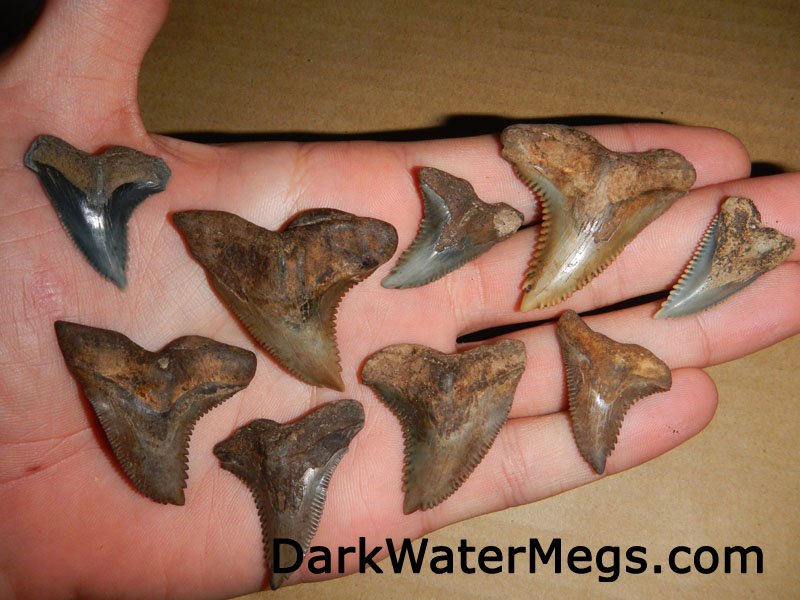 Pictures of fossil shark teeth from DarkWaterMegs.com