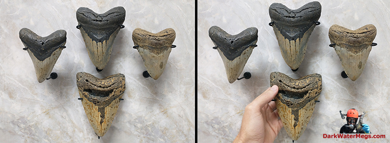 I developed and began producing the Dark Water Megs Megalodon Wall Mount several years ago, so that collectors purchasing teeth had a new and unique way to display their megalodon shark teeth. Over the past few years I have been fortunate enough to help many collectors display their megalodon teeth using these wall mounts. I have also been able to work with collectors, homeowners, and interior designers to put together some really amazing megalodon tooth wall mount displays. These megalodon display walls range from just a couple of teeth to some that utilize dozens of megalodon teeth.