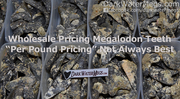 While using the price per pound model to buy or sell megalodon teeth is helpful for getting a ballpark idea of price or estimate large quantities of teeth being purchased as the quality of the teeth to up the effectiveness of the wholesale megalodon price per pound model goes down.