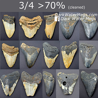 Fossilized megalodon and other shark teeth sold wholesale have their price determined by several factors but one of those significant factors is condition, or grade. I try to grade my teeth using a percentage system rather than a 1-10 or A,B,C,D,F grade rating so I can communicate desired quality with the wholesale buyer and have the grade be less opinion based or subjective. Typically a wholesale buyer will request megalodon or other fossilized shark teeth of a certain grade or percentage range so I can narrow down choices of a large wholesale inventory.